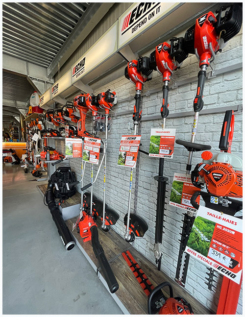 Pour la fille du pépinièriste bien connu Jacky, il s'agissait de donner vie à une offre de services, complémentaire à l'entreprise familiale. Leur coeur de métier est centré sur la vente et réparation d'engins pour les professionnels et les particuliers.